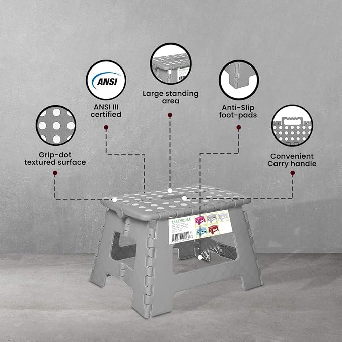 Splendole Small Folding Step Stool – Compact Anti-Slip Plastic Step for Kitchen & Bathroom - Black is backordered and will ship as soon as it is back in stock.
